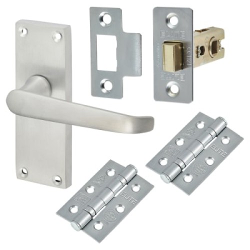 • Each kit contains everything you need for one door: 1 x pair of handles, 1 x pair 75mm hinges, 1 x tubular latch (backset 57mm)