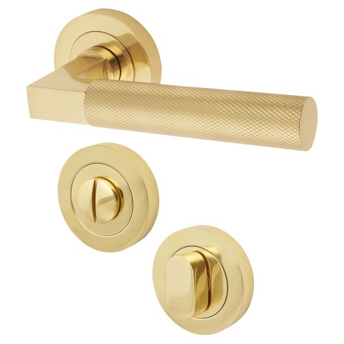 Hampstead Solid Brass Knurled Door Handle on Rose with Turn & Release - Polished Brass