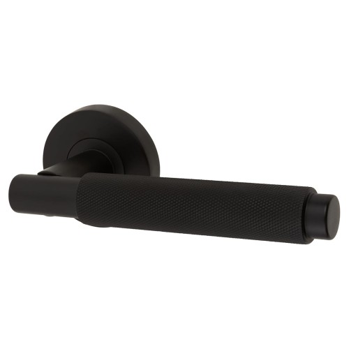 Jigtech Textura Latch Door Handle on Rose Kit - Passage - Matt Black