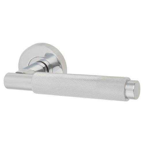 Jigtech Textura Latch Door Handle on Rose Kit - Passage - Polished Chrome