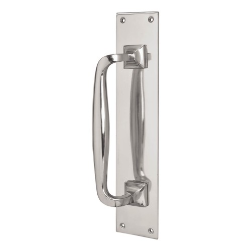 Exel Brewery Offset Door Pull Handle on Plate - Screw Fix - 305 x 63mm - Chrome