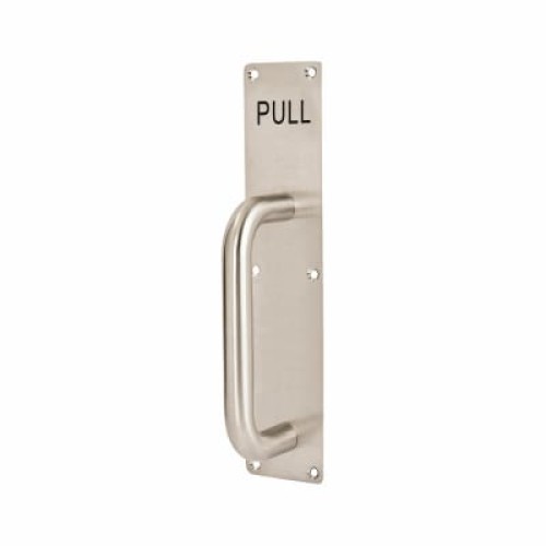• Exel D-Bar Door Pull Handle on Plate - PULL - Screw Fix - 275 x 60 x 1.5mm - Satin Stainless Steel