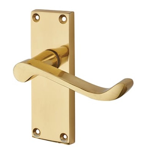 • Exel Polished Brass Budget Scroll Latch Door Handle - Short Plate - Mia Range - 114 x 42mm