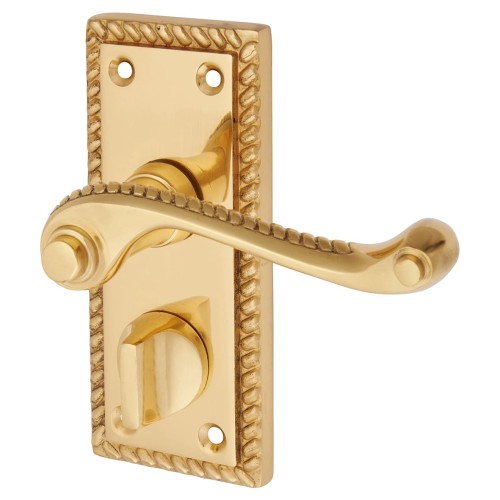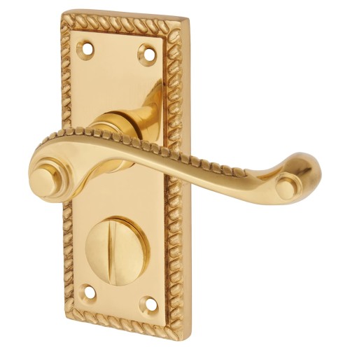 Exel Polished Brass Georgian Scroll Privacy Door Handle - Short Plate - 117 x 45mm