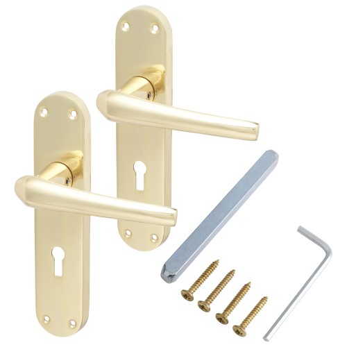 Hampstead Polished Brass Keyhole Lock Door Handle - Naples Range - 182 x 40mm