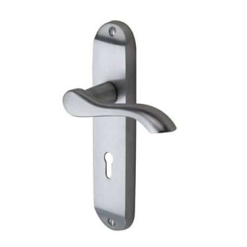 • M Marcus Satin Chrome Scroll Keyhole Lock Door Handle - Aurora Range - 183 x 42mm