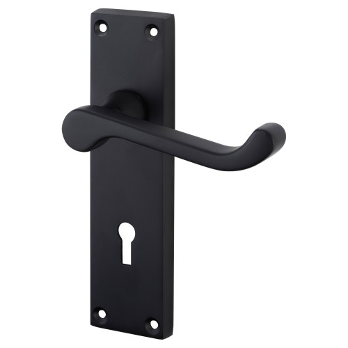 Matt Black Victorian Scroll Keyhole Lock Door Handle - 153 x 40mm