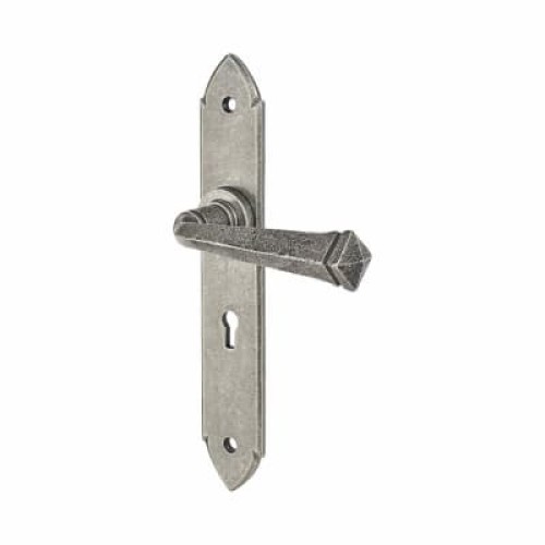 Olde Forge Pewter Gothic Keyhole Lock Door Handle - Long Plate - 247 x 44mm