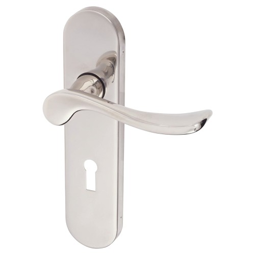 Urfic Polished Nickel Scroll Keyhole Lock Door Handle - Berkshire Range - 113 x 39mm