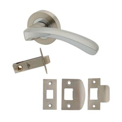 Contains: 1 set of lever door handles on rose, 1 x 57mm backset latch with privacy function
