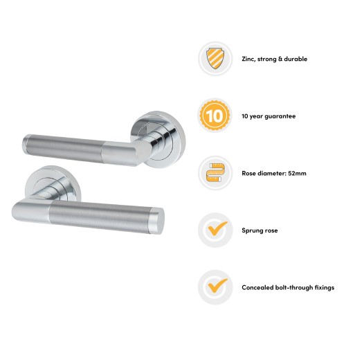 Excel Polished/Satin Chrome Door Handles on Round Rose - Serena Range