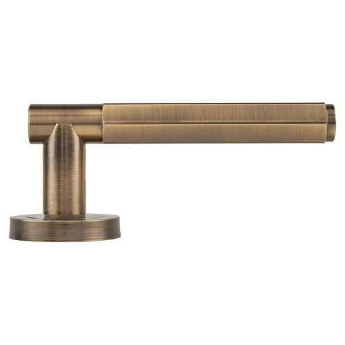 Exel Antique Brass Hexagonal Door Handles on Round Rose - Juno Range