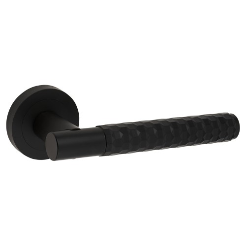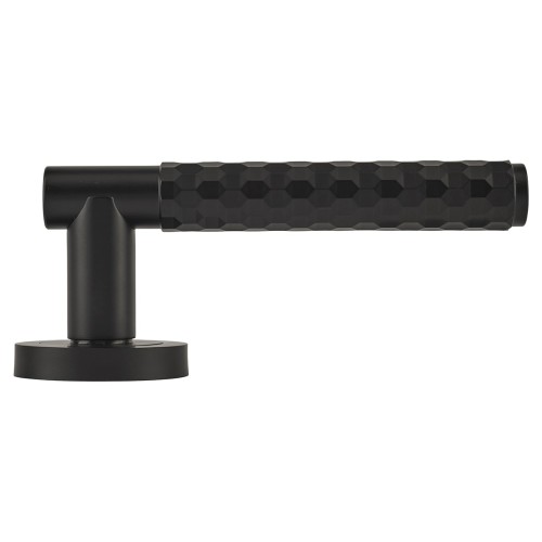 Exel Matt Black Honeycomb Door Handles on Round Rose - Cara Range