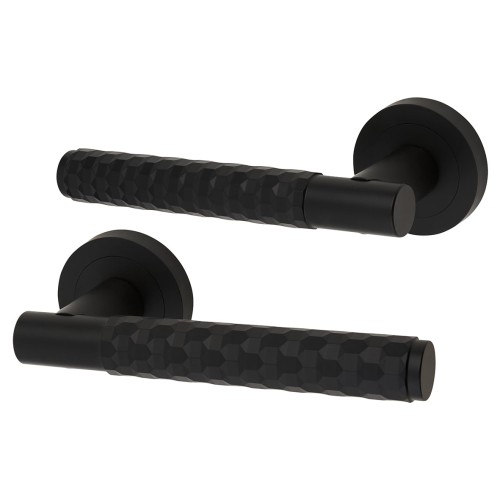 • Exel Matt Black Honeycomb Door Handles on Round Rose - Cara Range