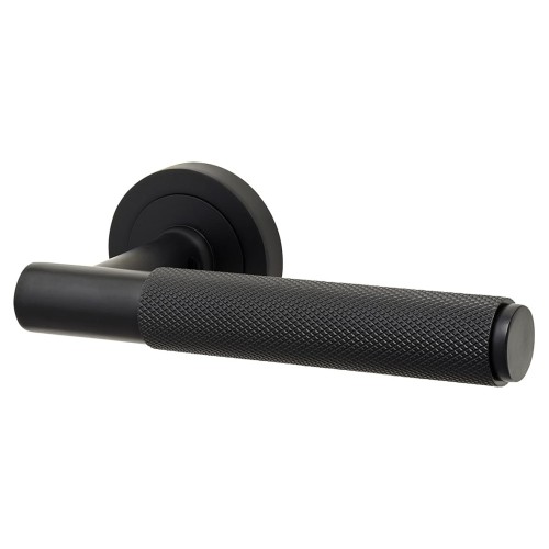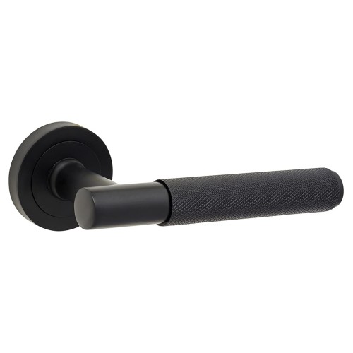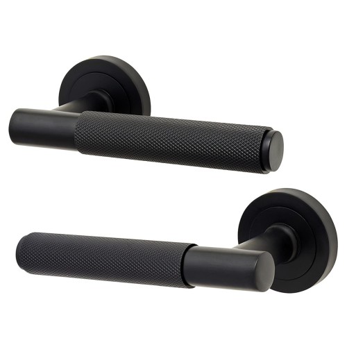 • Exel Matt Black Knurled Door Handles on Round Rose - Remi Range