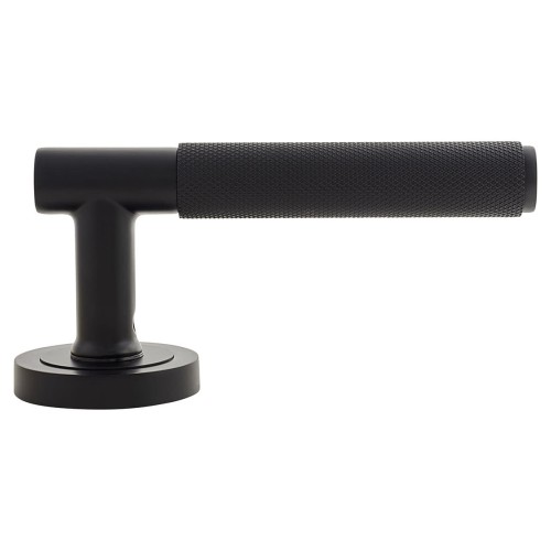 Exel Matt Black Knurled Door Handles on Round Rose - Remi Range