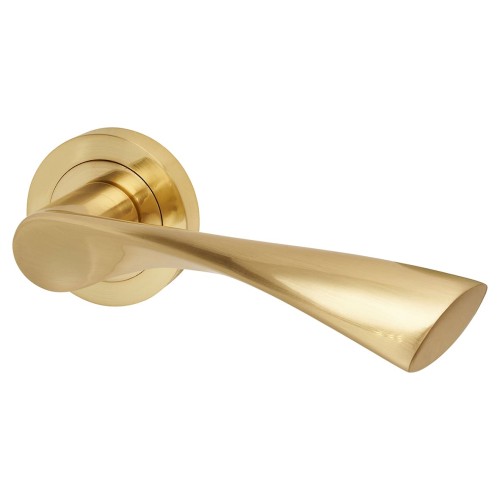 Exel Satin Brass Door Handles on Round Rose - Knightsbridge Range