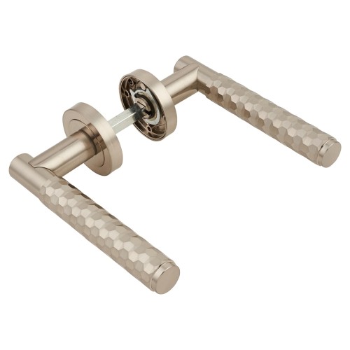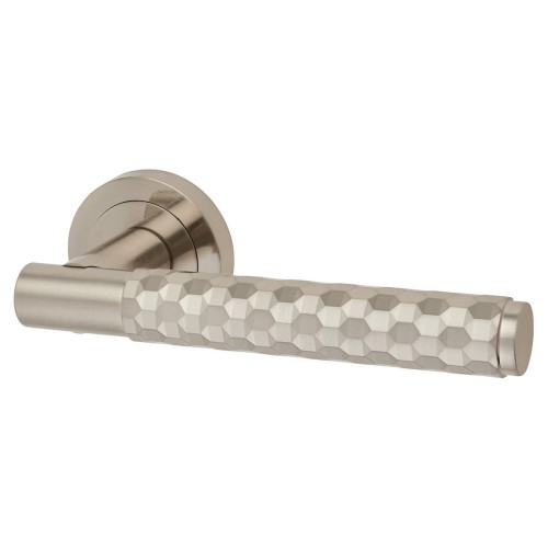 Exel Satin Nickel Honeycomb Door Handles on Round Rose - Cara Range