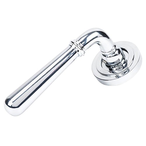 • From The Anvil Polished Chrome Door Handles on Round Art Deco Rose - Newbury Range