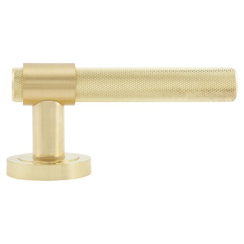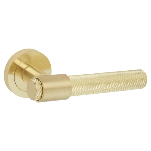 Hampstead Satin Brass Knurled Door Handles on Round Rose - Esme Range