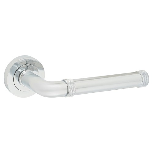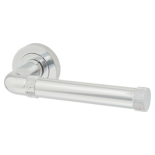 • Jedo Polished Chrome Fire Rated Knurled Door Handles on Round Rose - Midtown Range
