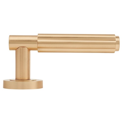 • Jedo Satin Brass Fire Rated Fluted Door Handles on Round Rose - Bloom Range