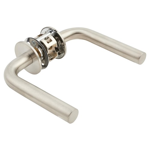 • Jigtech Satin Stainless Steel Door Handles on Round Slim Rose - Schema Syfte Range
