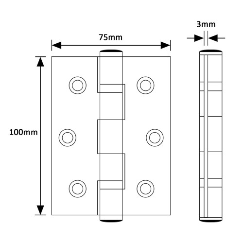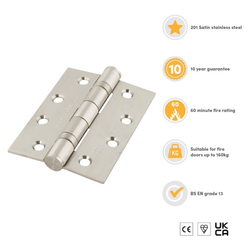 • Exel Twin Ball Bearing Grade 13 Butt Fire Door Hinge - 100 x 75 x 3mm - 201 Sat Stainless - Pair
