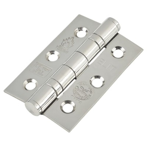 Twin Ball Bearing Grade 7 Butt Fire Door Hinge - 76 x 51 x 2mm - Polished Stainless Steel - Pair