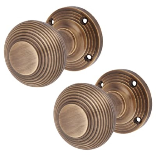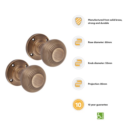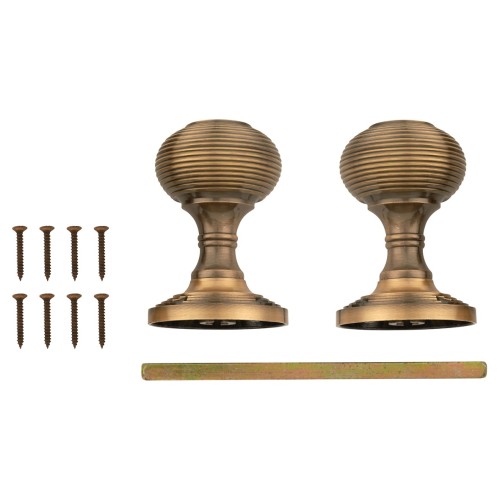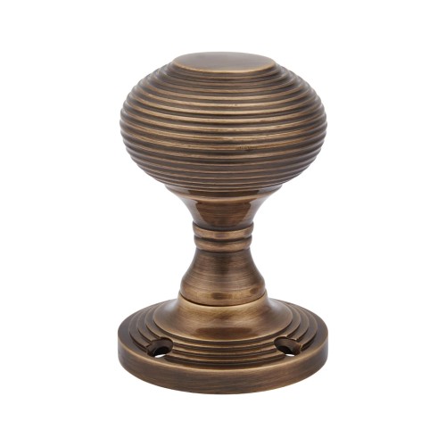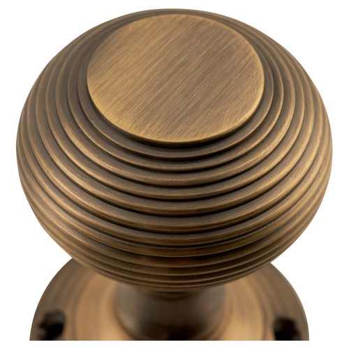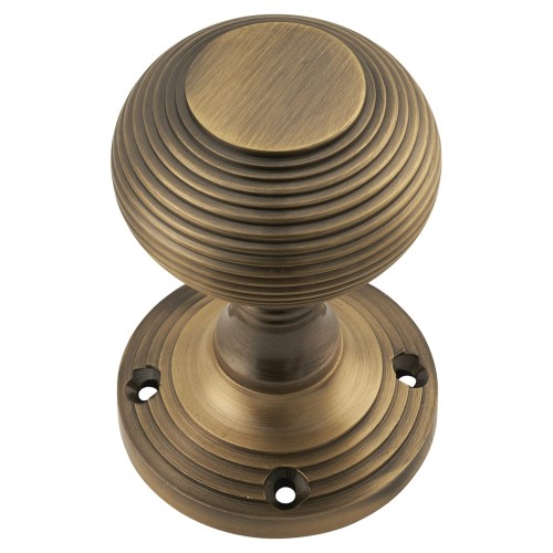 • Exel Reeded Beehive Mortice Door Knob - 60mm Rose Diameter - Antique Brass