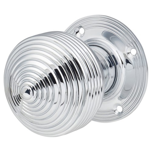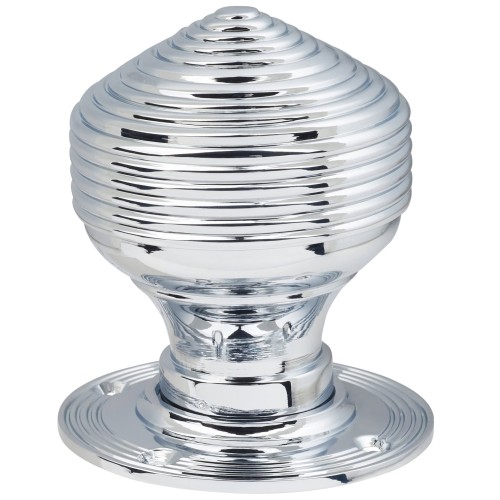 Hampstead Edwardian Reeded Beehive Mortice/Rim Door Knob - 60mm Rose Diameter - Polished Chrome