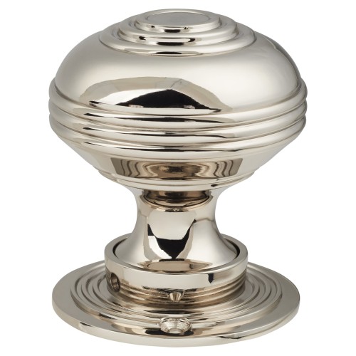 • Hampstead Georgian Ringed Mortice/Rim Door Knob - 65mm Rose Diameter - Polished Nickel