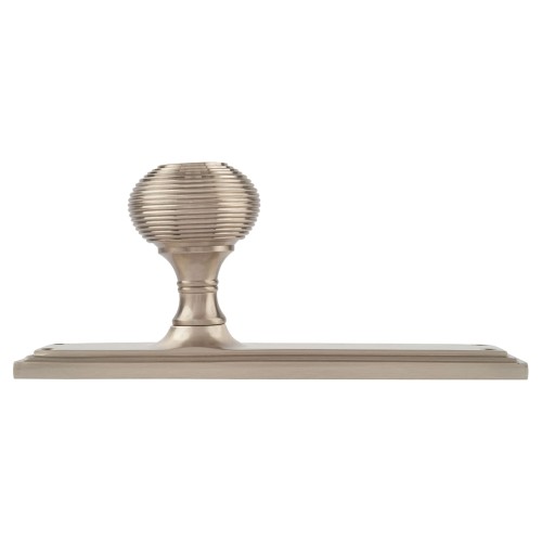 • Hampstead Miller Reeded Mortice Door Knob on Backplate - Latch - 205 x 52mm - Satin Nickel