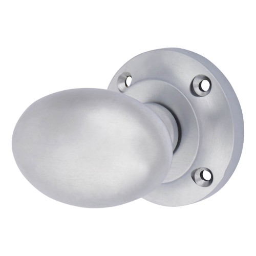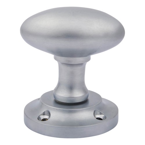 • Oval Mortice Door Knob - 57mm Rose Diameter - Satin Chrome