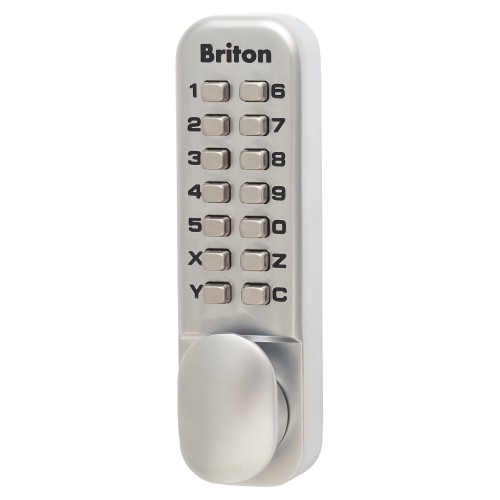 Briton 9160 Push Button Code Lock and Latch - Holdback Option - Satin Chrome