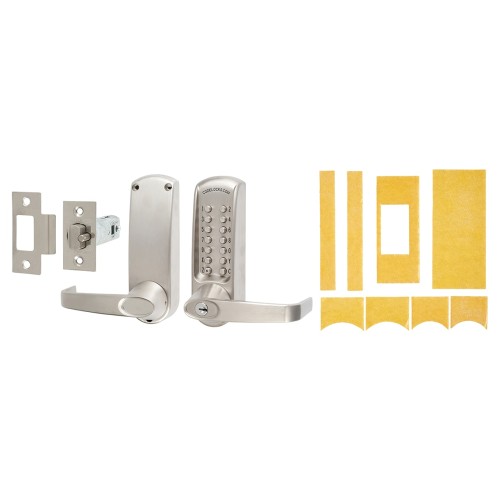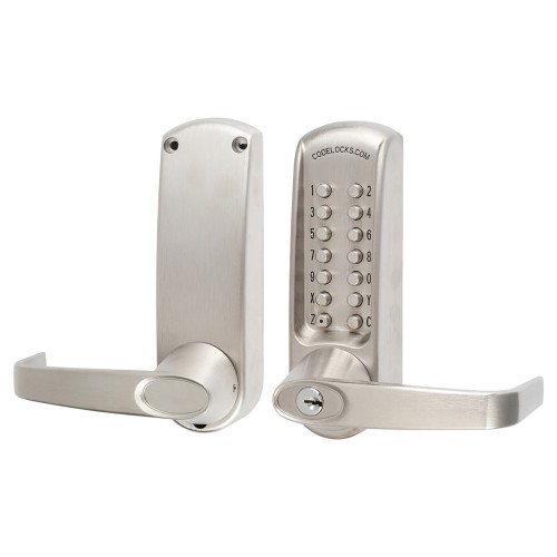 Codelocks CL615 Push Button Code Lock and Latch with Intumescent - Key Override - Brushed Steel