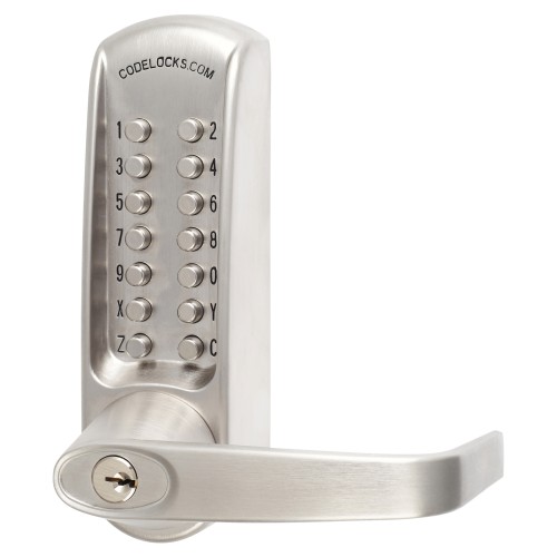 • Codelocks CL620 Push Button Code Lock and Mortice Lock with Key Override - Brushed Steel
