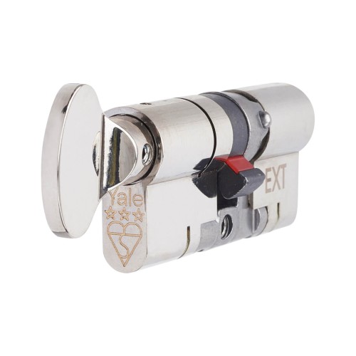 • Yale 3 Star Anti-Snap Platinum 70mm Euro Thumbturn Cylinder - 35mm Turn + 35mm - Polished Nickel