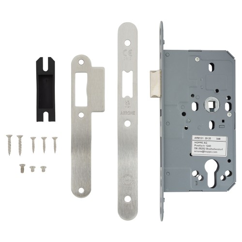 Arrone AR8101 DIN Upright Latch - 88mm Case - 60mm Backset - Radius - Satin Stainless Steel