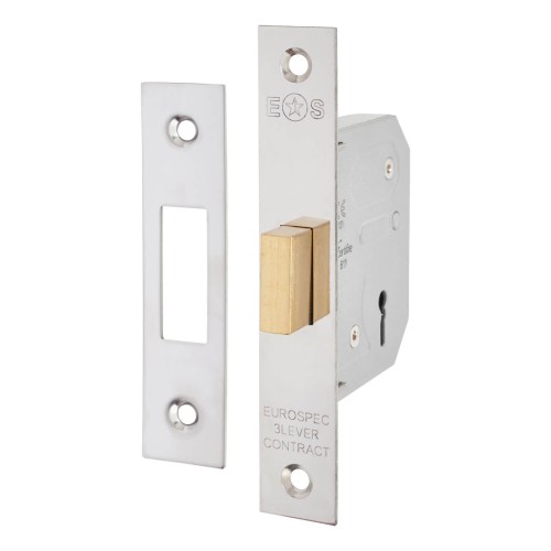 Exel Contract 3 Lever Deadlock - 64mm Case - 44mm Backset - Polished Nickel