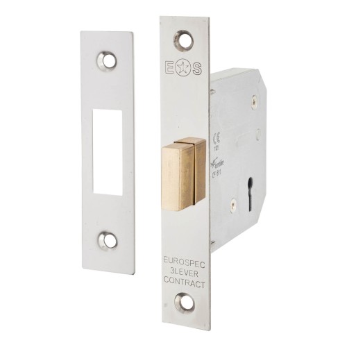 Exel Contract 3 Lever Deadlock - 76mm Case - 57mm Backset - Polished Nickel
