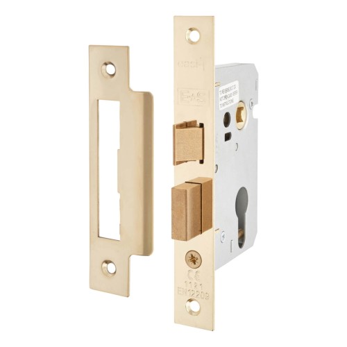 Exel Contract Euro Profile Sashlock - 65mm Case - 44mm Backset - Polished Brass