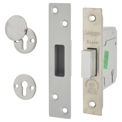 • Legge Heavy Duty BS3621:2007 5 Lever Deadlock - 64mm Case - 44mm Backset - Polished Stainless Steel