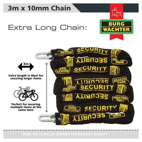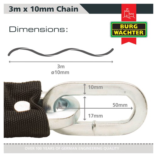 • Burg Wachter GKM Fabric Sleeve Hardened Square Link Security Chain - 10 x 3000mm - Black