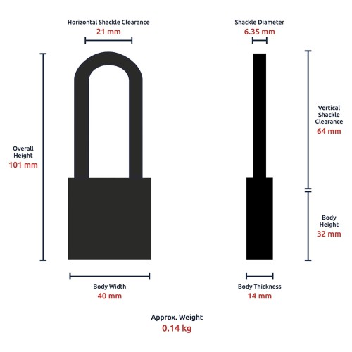 Shackle Clearance (mm): 64 x 23