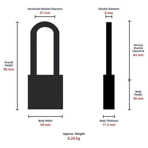 Shackle Clearance (mm): 52 x 28