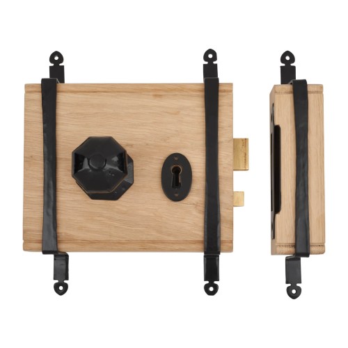 Elan Oak Box Door Lock - Antique Black Iron Knob