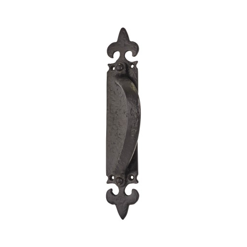Olde Forge Fleur de Lys Offset Door Pull Handle on Plate - Screw Fix - 260 x 45mm - RH - Black Iron