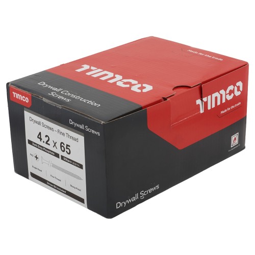 TIMCO Fine Thread Bugle Head Drywall Screws - 4.2 x 65mm - Dark Grey Phosphate - Pack of 500