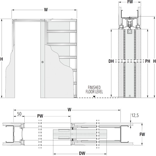 • ECLISSE Syntesis Single Pocket Door Kit - 100mm Finished Wall Thickness - 610 x 1981mm Door Size